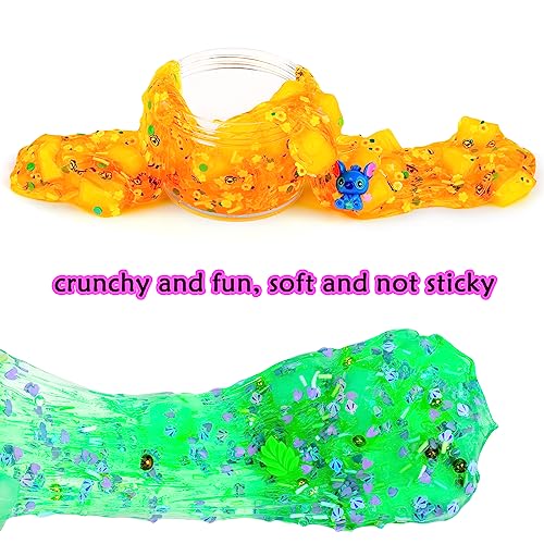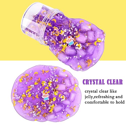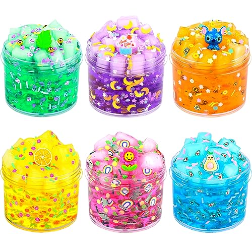 6 Pack Jelly Cube Crunchy Slime Kit, with Yellow, Pink, Purple, Green & Blue Clear Crunchy Slime, Super Soft Sludge Toy with Cute Charms, Party Favors Christmas Slime for Girls and Boys
