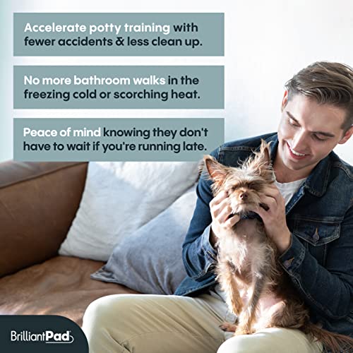 - Perfect For Small Dogs - Machine measures 34” x 24” x 6” and weighs 10 pounds to fit in most living spaces. At this size, BrilliantPad is ideal for small dogs under 25 pounds that are currently using pads. Great for pad training puppies. Not for Adult Dogs That Are Not Currently Using Pads