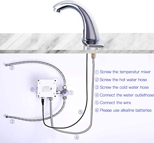 - 【Power By 4pcs AA Batteries】: Sensor powered by 4pcs AA Batteries (NOT included in the package). Safe to be used in bathroom, no need to worry about the risk of power leakage.