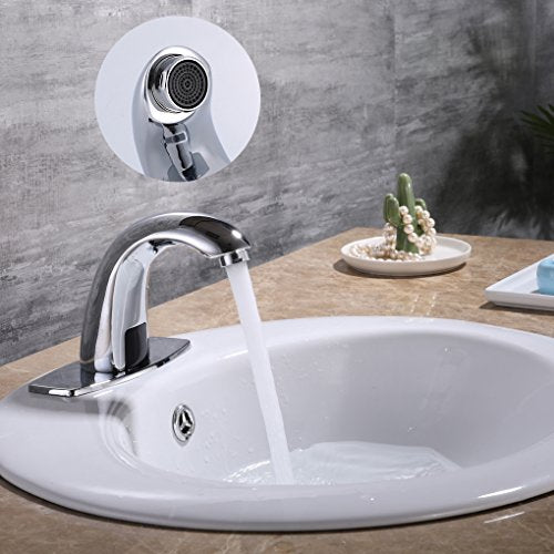 - 【Automatic Sensor Bathroom Faucet with Hole Cover Plate】: Motion sensor bathroom faucet by your hands, touch-free, prevent cross-infection after washing hands. NO need to touch any handle to turn off after washing your hands. Super convenient and clean. Deck plate is detachable. Better keep it for a good looking.
