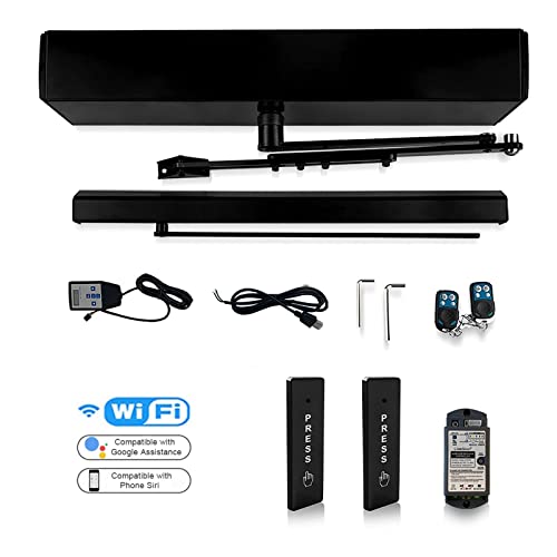 One complete set includes: Operator, 2 arms, 2 remotes,2pcs wireless push panels,1 smart wifi device,1 hand programmer,US Plug and cords,2pcs auto door attenation stickers,1 English manual.