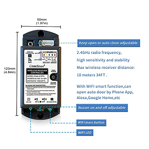 - [Easy Parameter Adjustment]Lots of parameters such as manually push force can be adjusted on closing force by handheld programmer of door opener wifi device