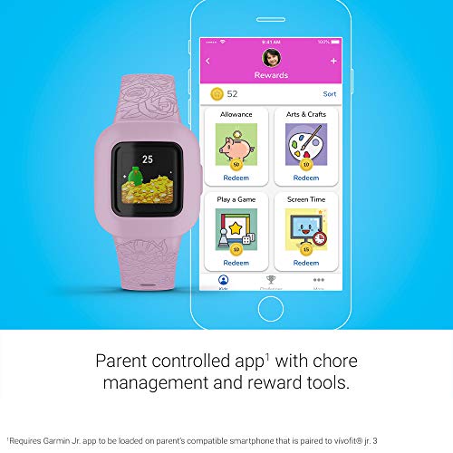 - For easy chore management, parents can use the garmin jr. app to assign tasks, schedule alerts and alarms, and reward kids for good behavior (requires garmin jr. app loaded on parent’s compatible smartphone paired to vívofit jr. 3)