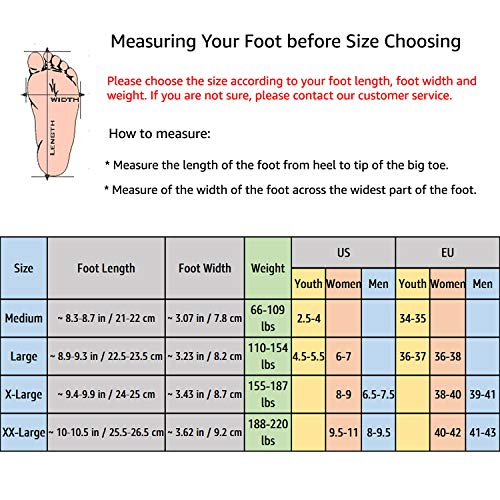 Details: As an athlete, you need to be able to perform at your best all the time. There's no time for injuries on your quest for the gold! Developed for athletes to reduce stress on the joints, and cut down on chronic and acute injuries during training, the Unisex Fitness Jump Shoes help to develop explosive strength without putting undo stress on the body allowing you to perform your best. The bounce shoe's design slows impact time and allows the body to adjust and absorb the impact. At the same time, the rounded sole promotes better balance and posture aligning the spine and hips with each stride. The built in safety release system helps prevent injury during use. Some examples of health benefits include:-Increased base metabolic rate. -Heightened cardiovascular endurance. -Stimulates osteoblastic bone building to combat osteoporosis. -Increased metabolism. Size details:Medium- Foot Length 8.3-8.7 inches, Foot Width 3.07 inches. For weight 66 to 109 lbs, US Youth's 2.5-4. Shoes Shipping Weight 8 lbs.Large- Foot Length 8.9-9.3 inches, Foot Width 3.23 inches. For weight 110 to 154 lbs, US Women's sizes 6-7, Youth's 4.5-5.5. Shoes Shipping Weight 8 lbs. Please choose the size according to your foot length, foot width and weight. If you are not sure, please contact our customer service.If used outdoors at temperature below 50F, the plastic will become brittle and may break. Use on flat, dry surfaces. Avoid slippery or uneven surfaces or debris. Check equipment for damage before use. The use of safety gear is recommended. Start by jogging in place before moving on to running and more strenuous activity. For non-professionals, in order to have a better bounce effect, please bounce your feet alternately when using your jumping shoes.