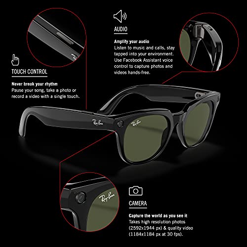 Details: Originally created in the 60s as an angular interpretation of the classic Wayfarer sunglasses, Meteor has evolved into a post-modern icon in its own right. Featuring distinct square wings and a bold bridge, it carves a unique shape in the crowd. And now, with the integration of Facebook technology, Ray-Ban Stories Meteor Smartt Glasses has extra edge. Ray-Ban Stories require mobile phone and wireless internet access. A Facebook account and the Facebook View app are required to share content on social media. Facebook account required. Facebook Assistant is only available in the English. Ray-Ban Stories feature: dual cameras, open-ear audio, and pairs with the Facebook View app to edit and share your content. IMPORTANT! For ages 13 and up · May interfere with personal medical devices · Voice command is only available in English · Requires: a mobile phone with Android (location services enabled) or iOS operating systems, wireless internet access, and a Facebook account · Detailed system requirements, software terms of license, terms of service are available at Ray-Ban® Official Store USA · Warranty information inside and available at Ray-Ban® Official Store USA · Features, functionality, and content are subject to change or withdrawal at any time, may be protected by digital rights management technology, unavailable or restricted in some areas, may depend on wireless service plan or internet service provider and may require subscriptions or fees · Requires updates to be installed from time to time, including prior to first use · This device complies with part 15 of the FCC Rules. Operation is subject to the following two conditions: (1) This device may not cause harmful interference; and (2) this device must accept any interference received, including interference that may cause undesired operation.