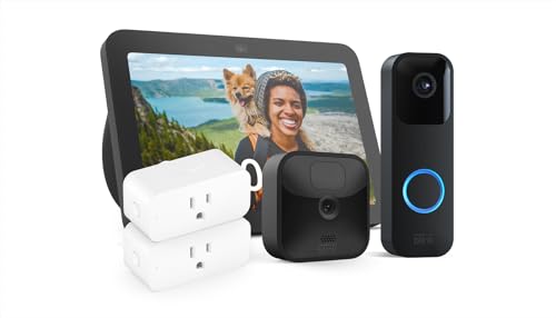Smart Home Bundle - Echo Show 8 + Blink Video Doorbell + Blink Outdoor 1-Cam System + 2 Smart Plugs